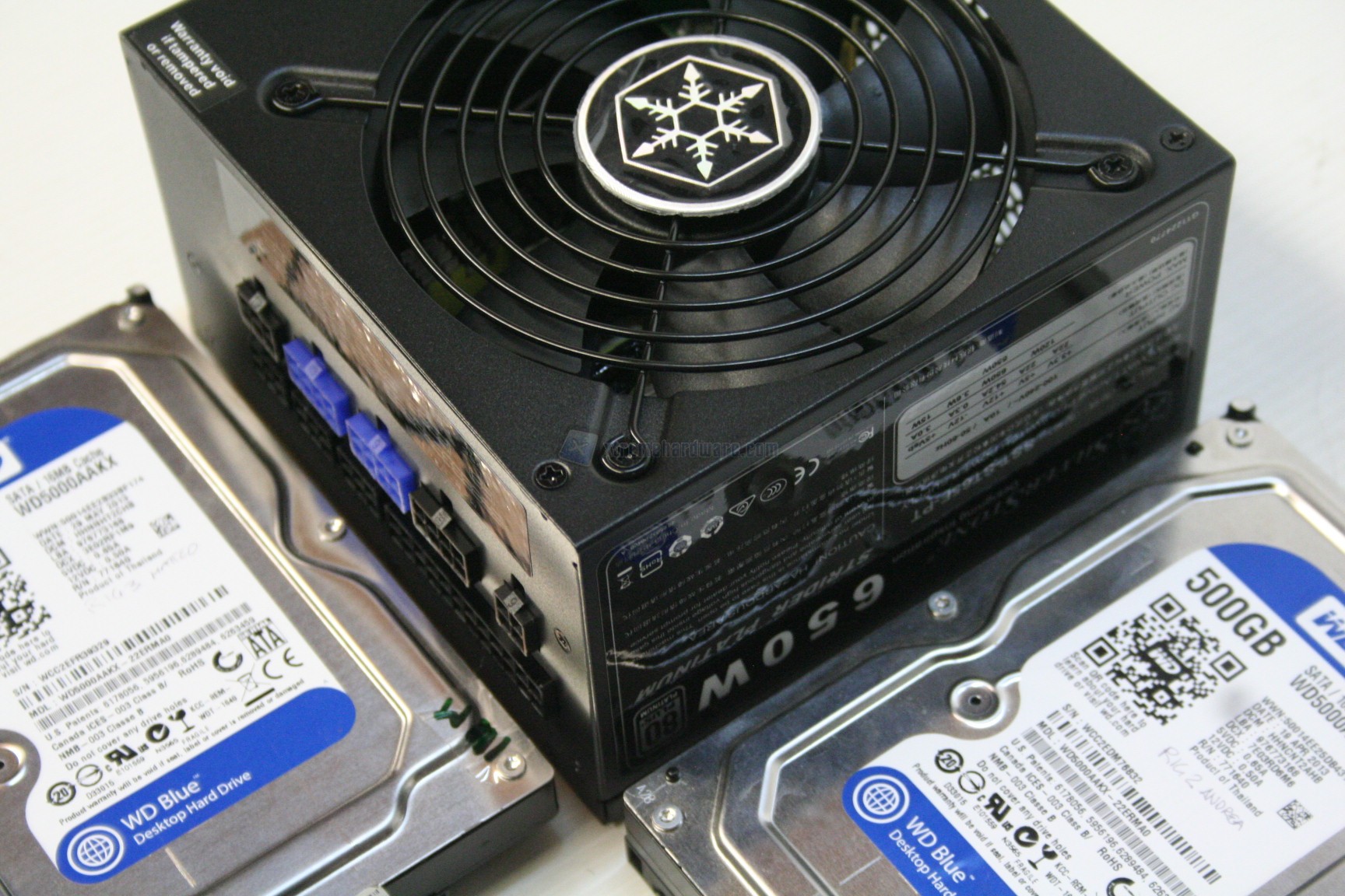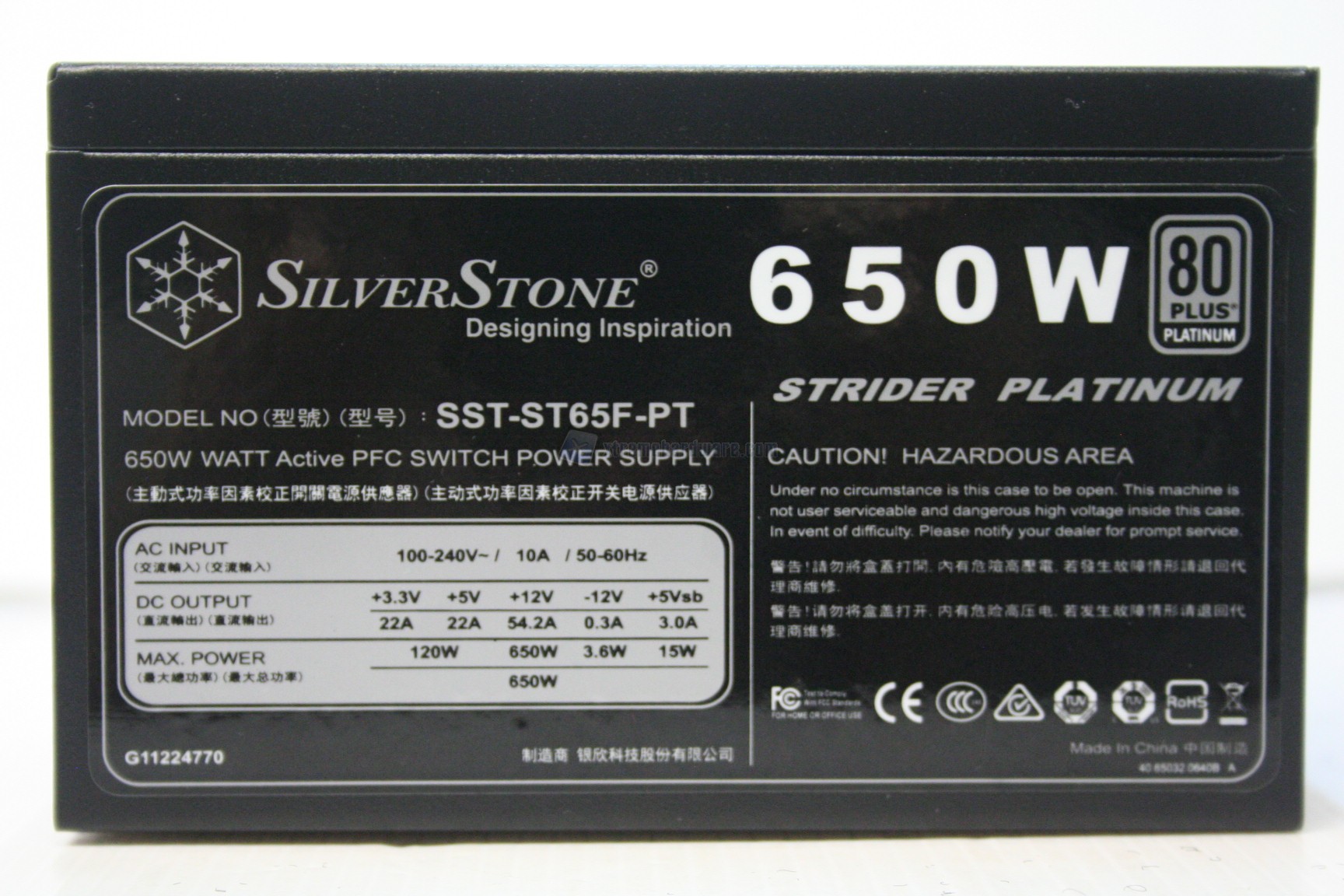 Non ci dilunghiamo molto poiché la scocca esterna è identica ai modelli della serie Strider, quindi avente uno sticker con i dettagli tecnici nel lato sinistro, visto posteriormente, nella parte anteriore il connettore C13 di ingresso della corrente assieme al pulsante di accensione, posteriormente le entrate femmine in ingresso per i connettori modulari e nella parte superiore la ventola da 120mm, con annessa griglia e logo Silverstone. La verniciatura è ottima e non sono presenti sbavature od imperfezioni.