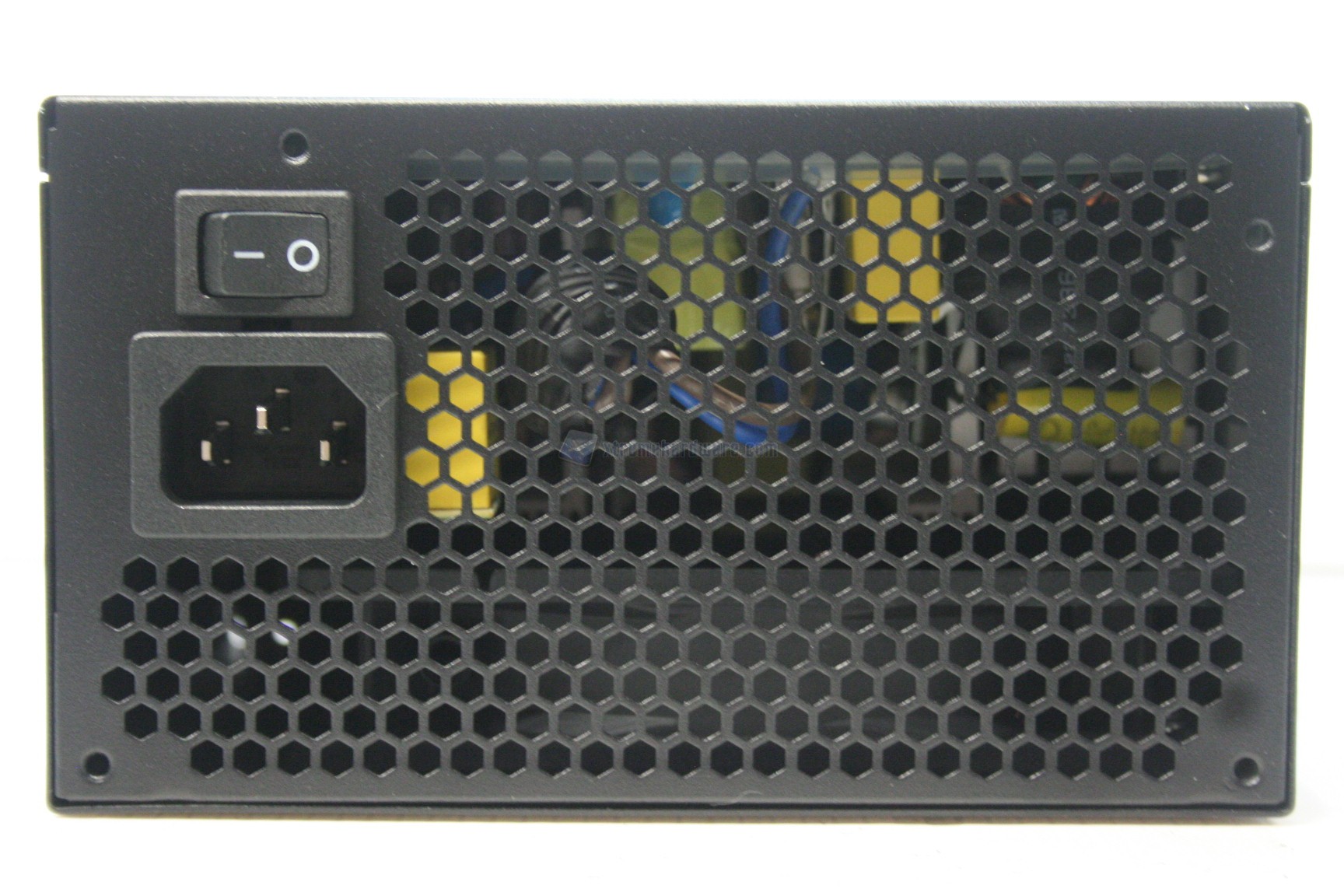 Lateralmente, in alto, c’è uno sticker che segnala la perdita della garanzia della casa produttrice qualora dovesse essere rimosso o forato, per permettere lo smontaggio della scocca, cosa presente nella quasi totalità degli alimentatori attualmente in commercio