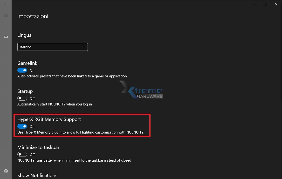 Nel caso delle memorie HyperX RGB per poter rilevare dovrete andare nelle impostazioni e abilitare il plug in alla voce HyperX RGB Memory Support. In questo modo dopo pochi secondi troverete le vostre RAM RGB HyperX nella lista dei dispositivi.