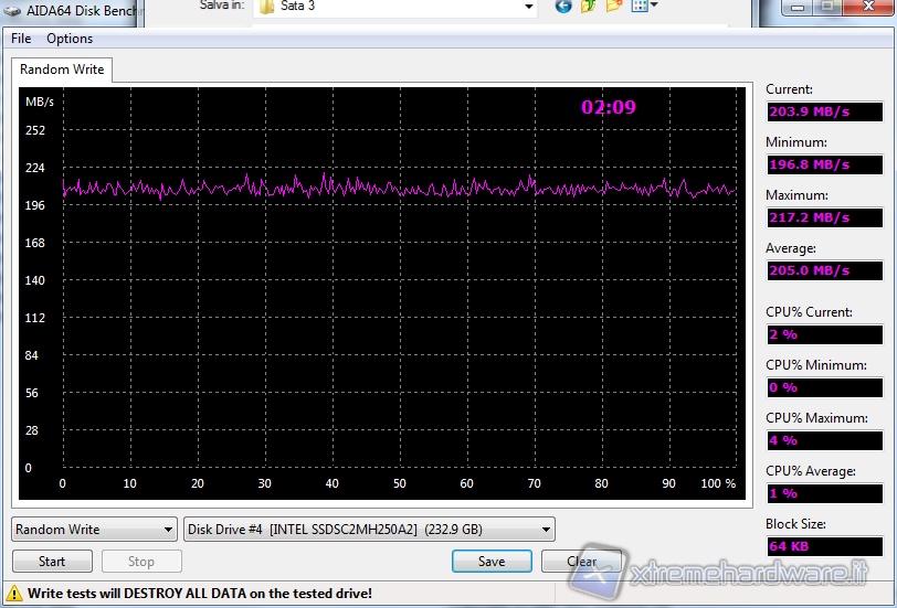 In questo test abbiamo potuto verificare le velocità del drive nella scrittura e lettura casuale (RANDOM), con risultati che tendenzialmente rispecchiano quanto verificato sino ad ora.
